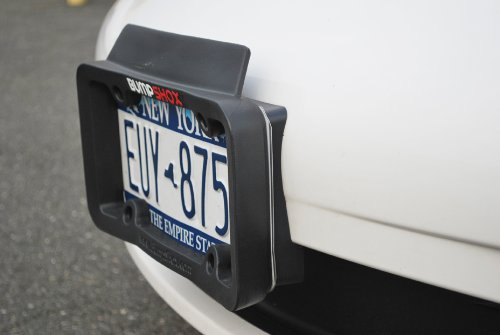 BumpShox is a replacement license plate frame that doubles as a car bumper protector. BumpShox was designed to compliment the sculpted lines of your vehicle while offering bumper protection 24 hours a day x 7 days a week - no need to remove the bumper guard. The BumpShox looks like a license plate frame on steroids; it's approximately 1.5" inches thick at the thickest point and noticeably wider and taller than a standard license plate. To attach the BumpShox bumper guard, simply remove the old license plate frame from the vehicle and use the existing bolts to attach BumpShox.